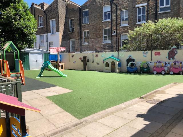 Our outdoor space includes a large range of outdoor play equipment where children may develop their gross motor skills, balance and co-ordination. We strive to take the whole curriculum outdoors and use our outdoor space as a continuation of the classroom. The children enjoy a range of sensory activities such as a music wall, water and sand play , mud kitchen and wildlife planting garden.